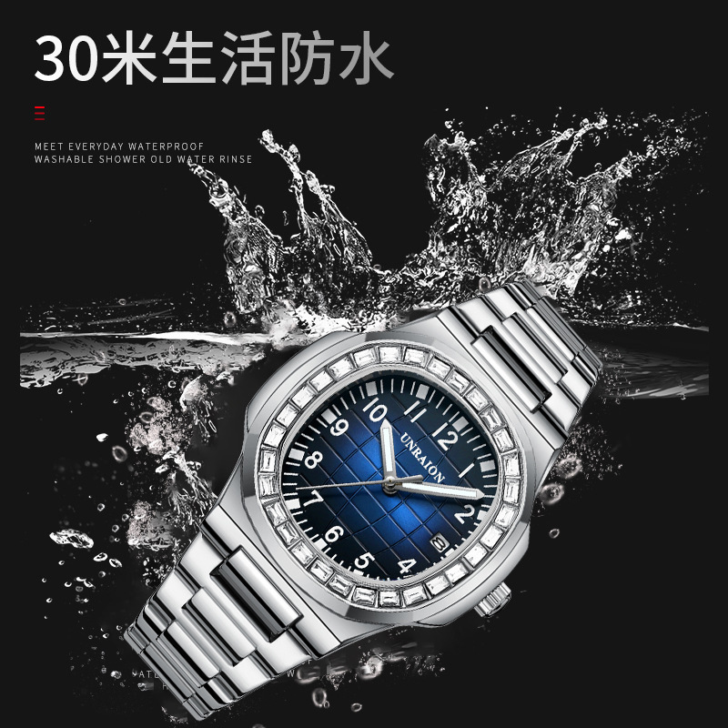 ノーチラス腕時計非機械式スクエアメンズ腕時計防水夜光カレンダーダイヤモンドメンズ腕時計クォーツ時計