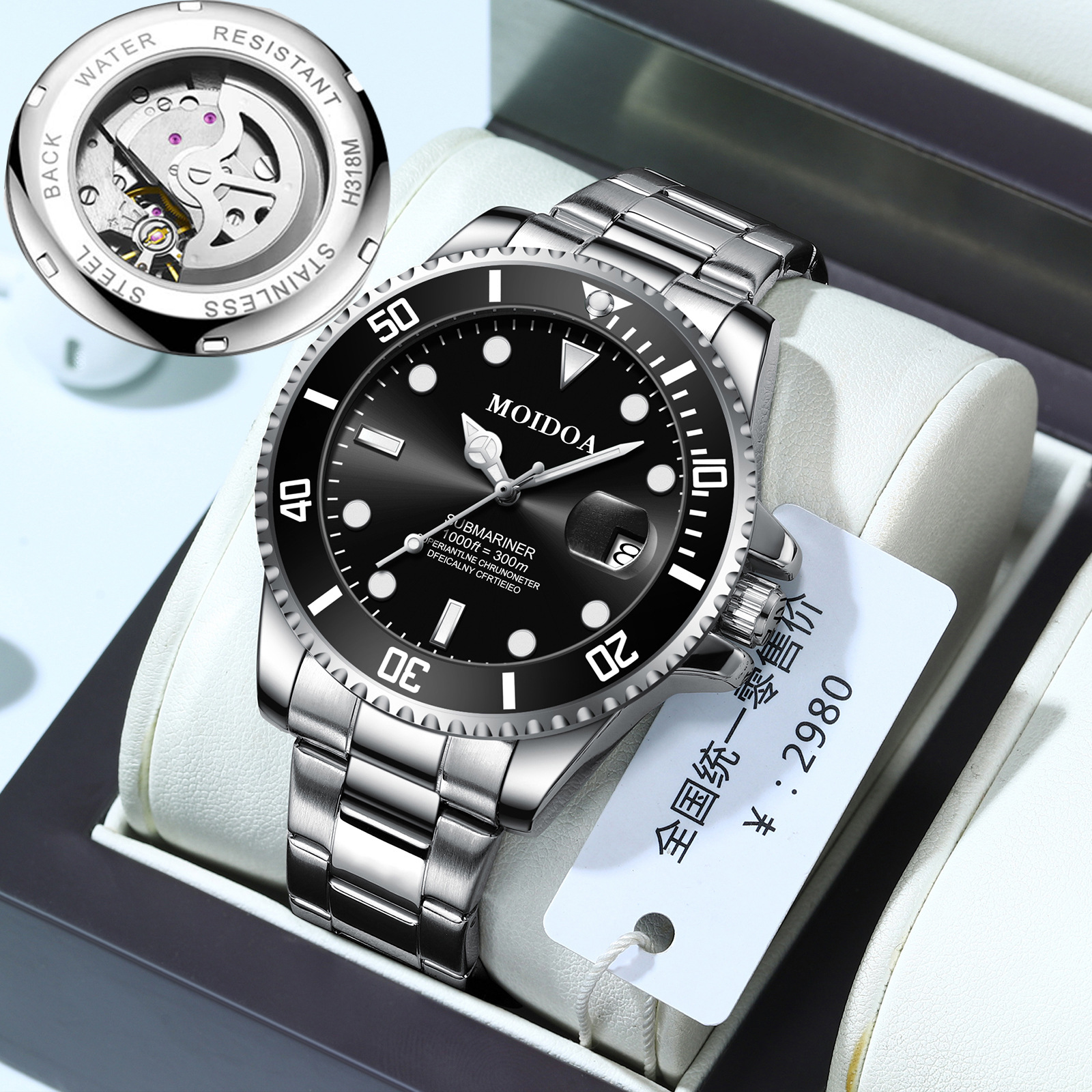 本物の中空偽機械式時計メンズバルーン発光カレンダー防水外国貿易クロスボーダー Douyin Kuaishou ドロップシッピング