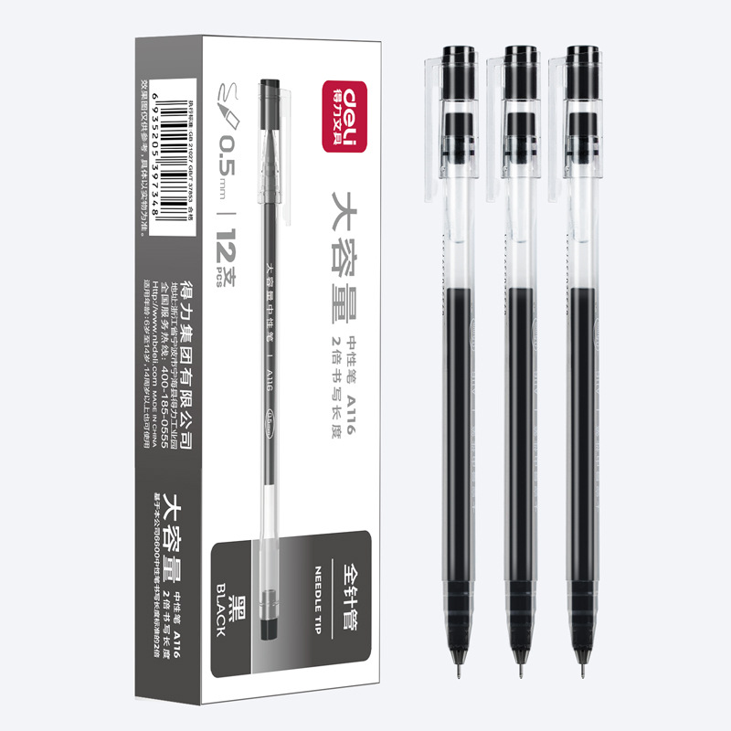 有力抜蓋中性ペンA116全針管大容量0.5mmシンプル黒中性ペンサインペン