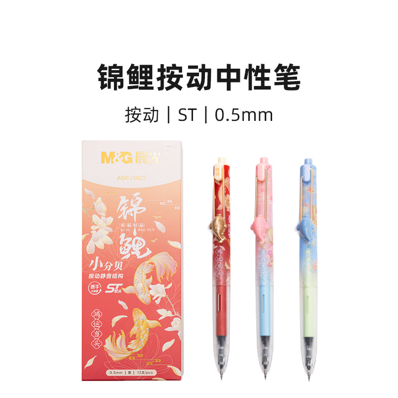 晨光 プッシュ式ゲルインクペン AGPJ9623 鯉の干し草速乾性装飾学生向け漫画風問題集STヘッド0.5ゲルインクペン