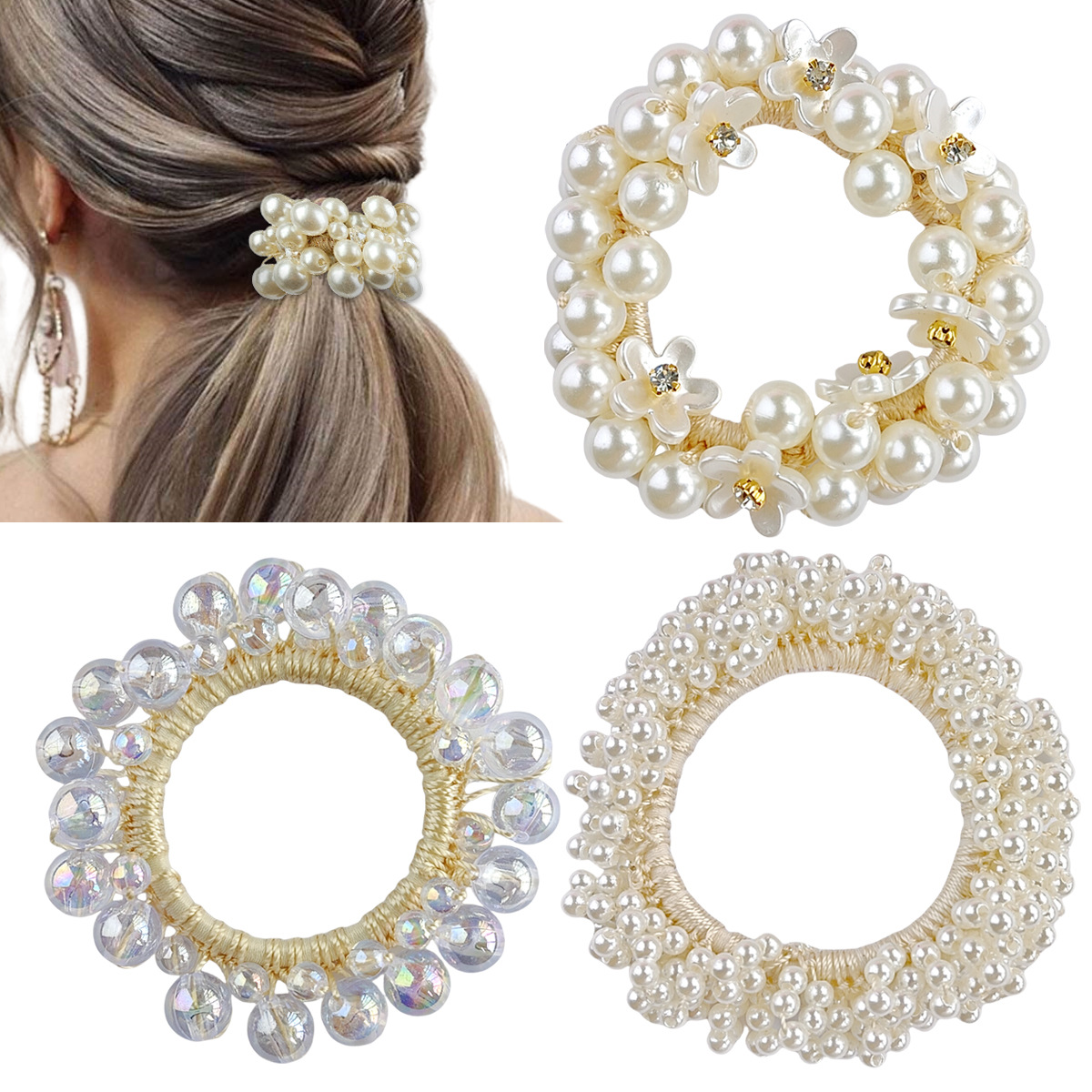 韓国のファッションの髪飾りの女性のカラーのバラの真珠の髪のひもはポニーテールの花の皿の髪輪の高弾力の皮筋を刺します。