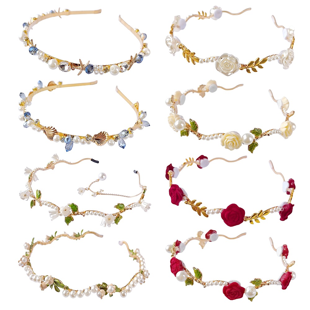 韓国の人気のある髪飾りの女性は、花の真珠の髪紐を入れています。
