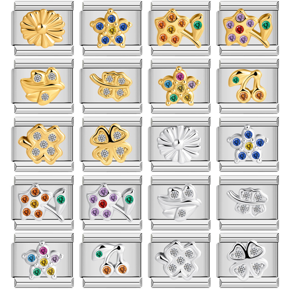 クロスボーダーステンレス鋼ファッションライト高級マイクロ象嵌ジルコンフラワードリップオイル漫画 DIY イタリアモジュールブレスレット