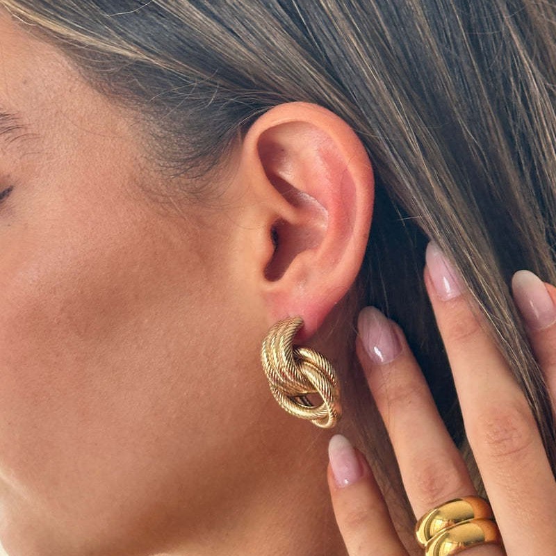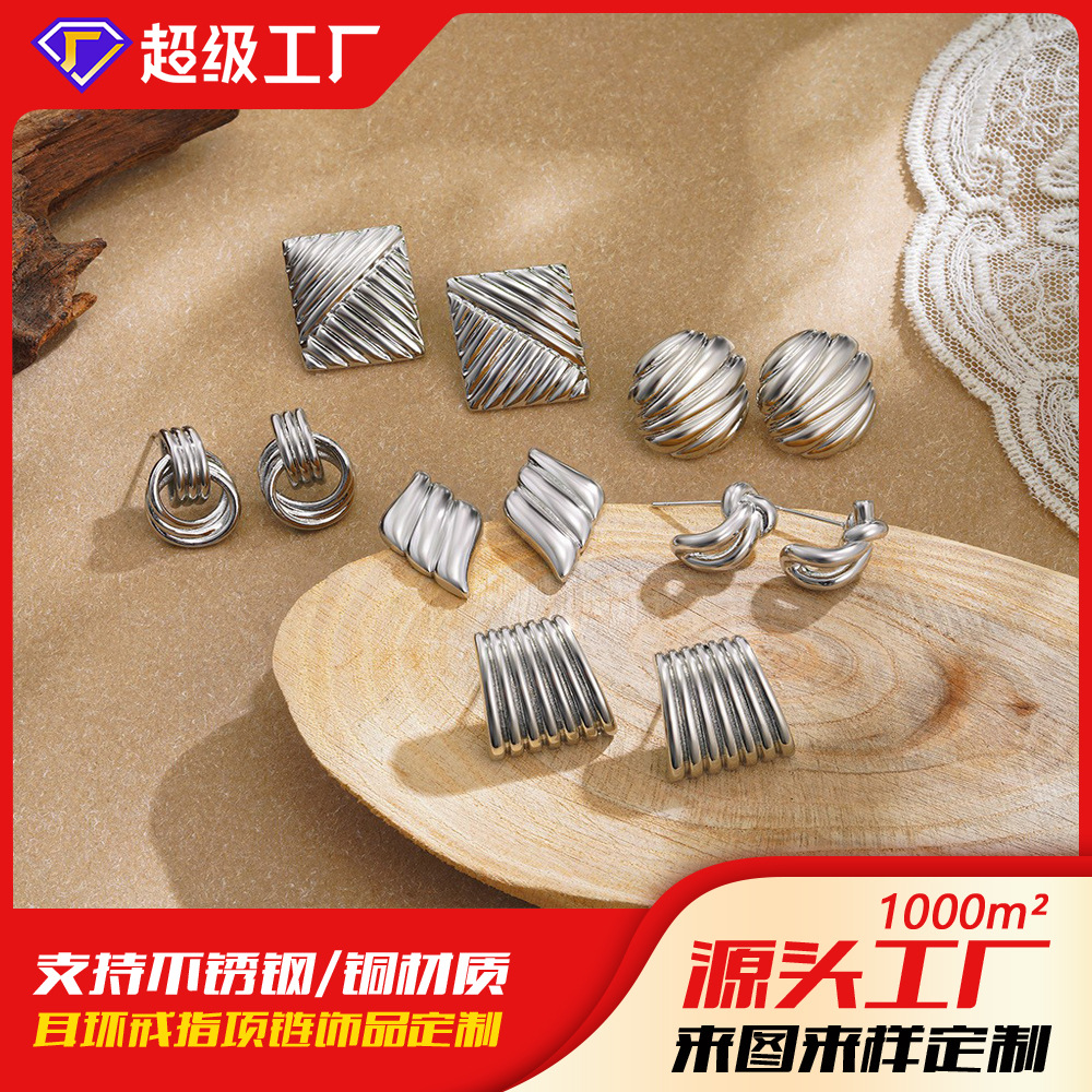 欧米のクロスボーダーの不規則な18k銀色シリーズのイヤリングの立体の双環の簡単なコイルはイヤリングのイヤリングを巻きます。