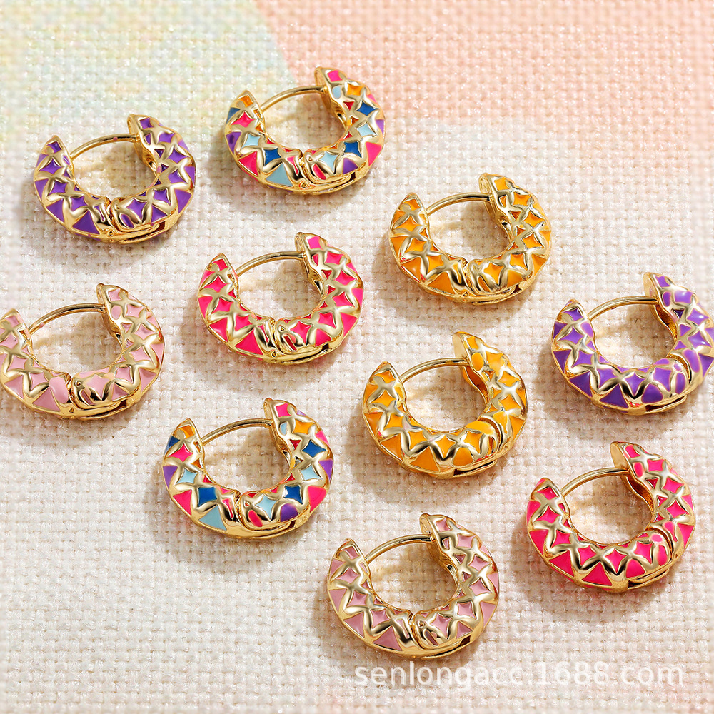 日韓クロスボーダー速売通カラードリップオイル女性耳輪ひし形女性耳輪百合甘亜鉛合金