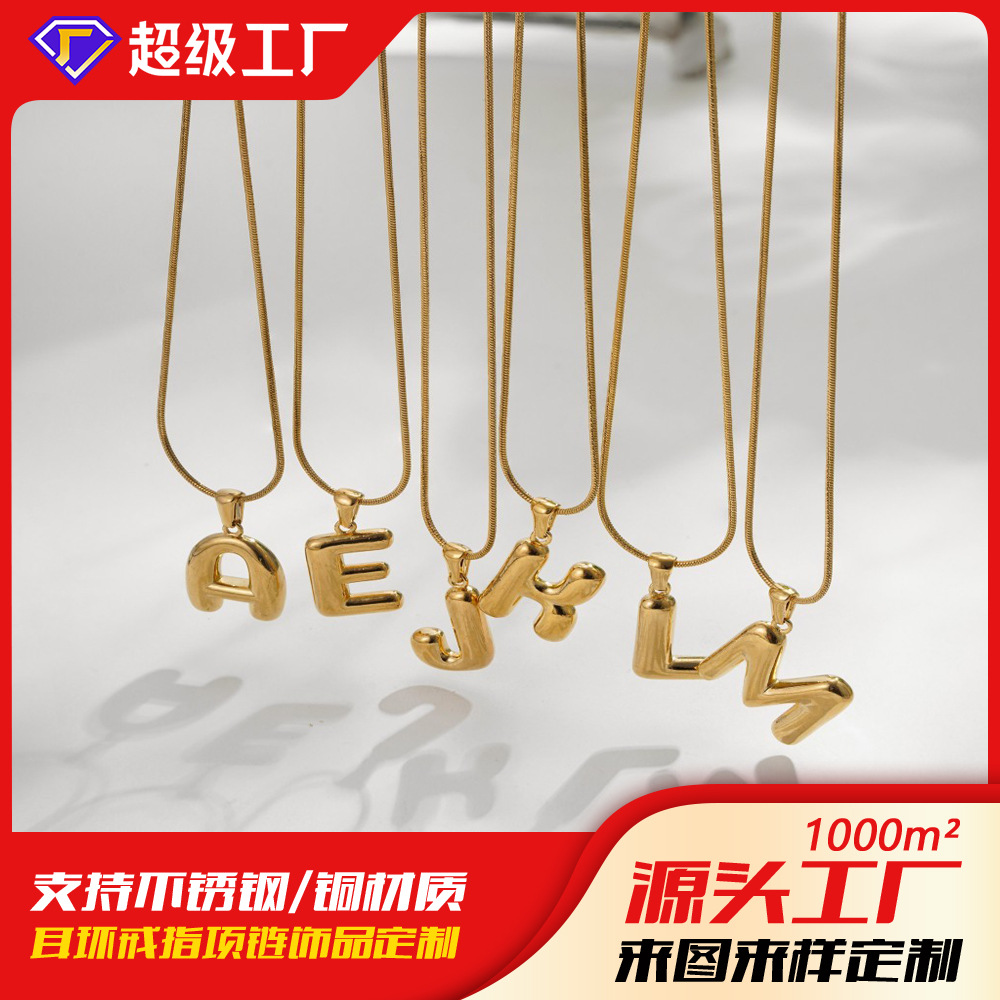 クロスボーダーファッションメッキ18K光沢のあるバルーンネックレスバブルかわいいぽっちゃり26英字鎖骨チェーン