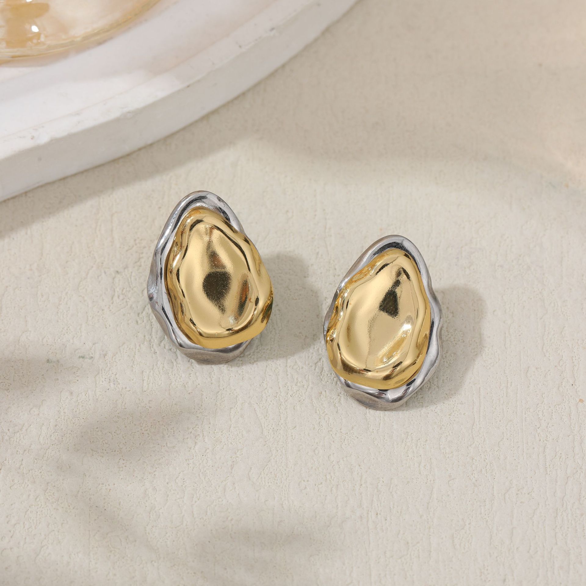 ヨーロッパとアメリカのクロスボーダーレトロハイエンドゴールドとシルバーの混合色二層不規則なイヤリング女性のステンレス鋼の気質ファッションイヤリング