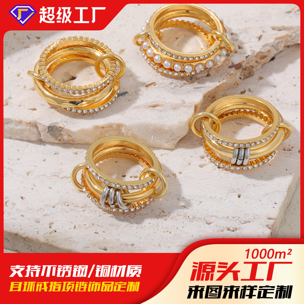 Amazon 新製品スタッキングキューブ連動ジルコンリングクロスボーダークリエイティブスタッキングパーソナライズリング