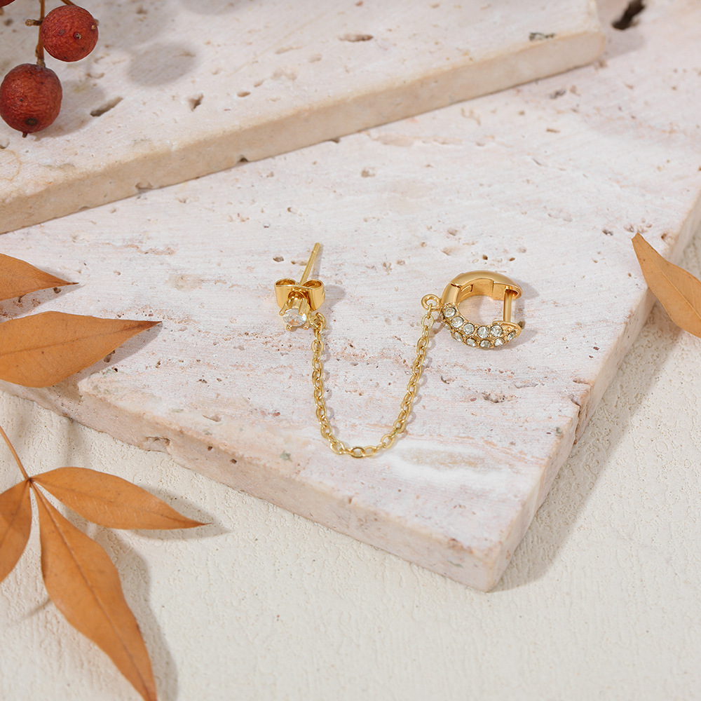 ヨーロッパとアメリカのファッショナブルなシンプルなマイクロ象嵌ジルコンスプライシングツーピースイヤリングクロスボーダー18Kゴールドパーソナライズされたライトラグジュアリー女性イヤリング