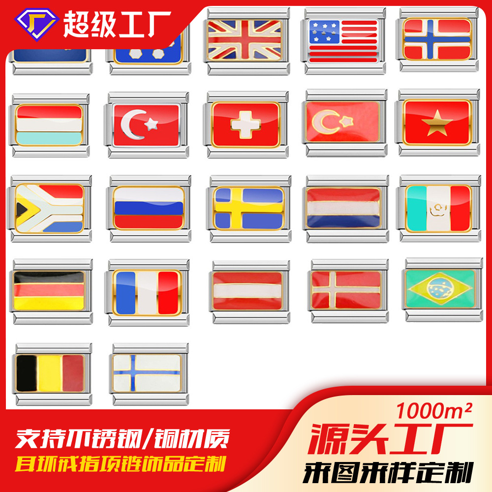 クロスボーダーヨーロッパとアメリカのステンレス鋼イタリアモジュールブレスレット国旗スクエア弾性スプライシング DIY 多用途男性と女性のブレスレット
