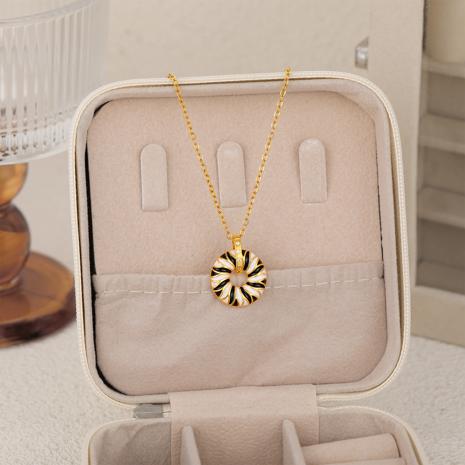 ヨーロッパとアメリカのクロスボーダー 18K ゴールドの軽い高級ニッチ鎖骨チェーンファッショナブルなラウンドストライプオイルドリップペンダントネックレス女性用