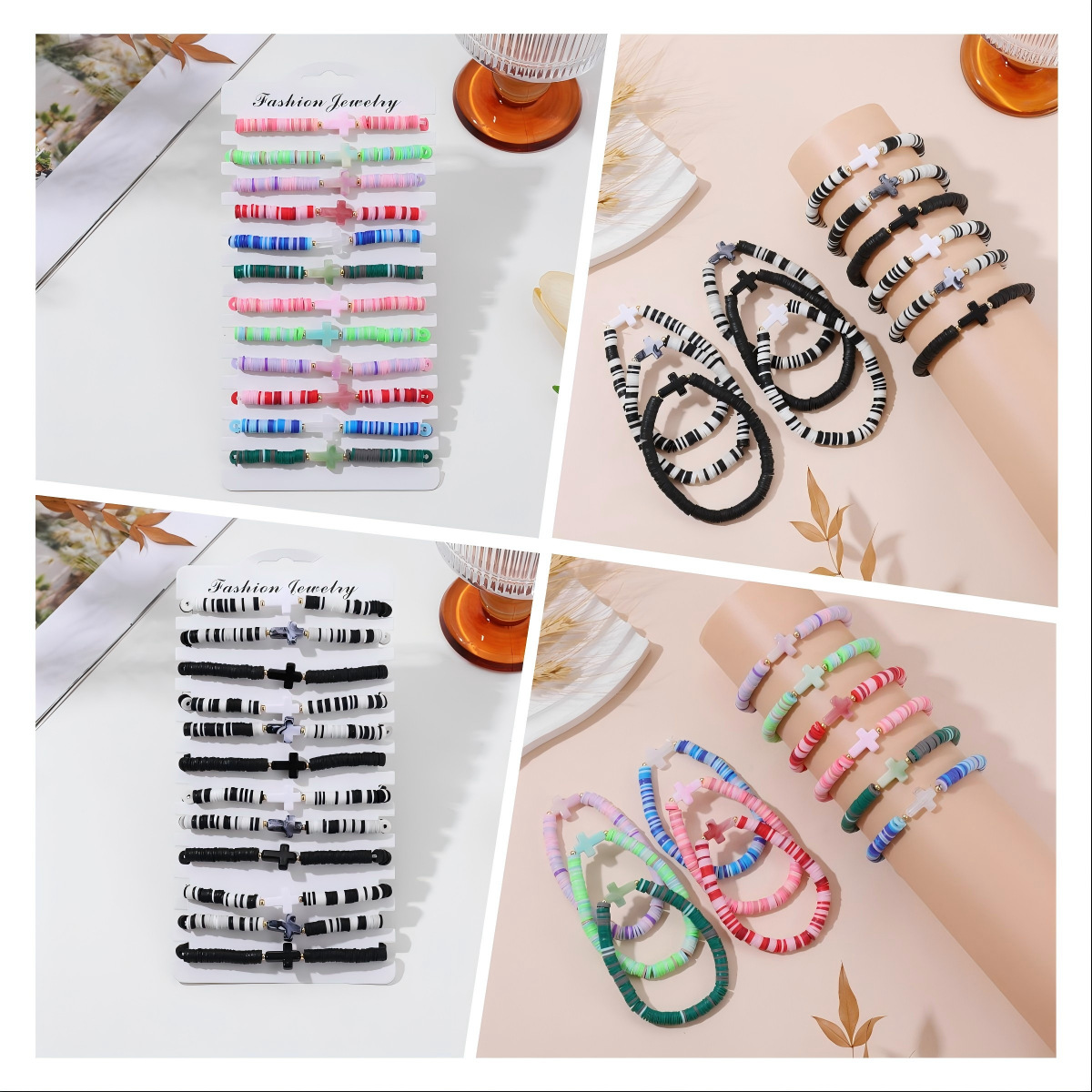 ヨーロッパとアメリカのクロスボーダーボヘミアンスタイルクロスブレスレットソフトクレイブレスレット12ピースレディースブレスレットセットホリデースタイル