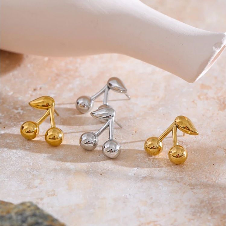 欧米の国境を越えて18kの金の甘い光沢のさくらんぼの形のピアスのファッションの小さい清新で美しい風の逸品の耳飾りをめっきします。