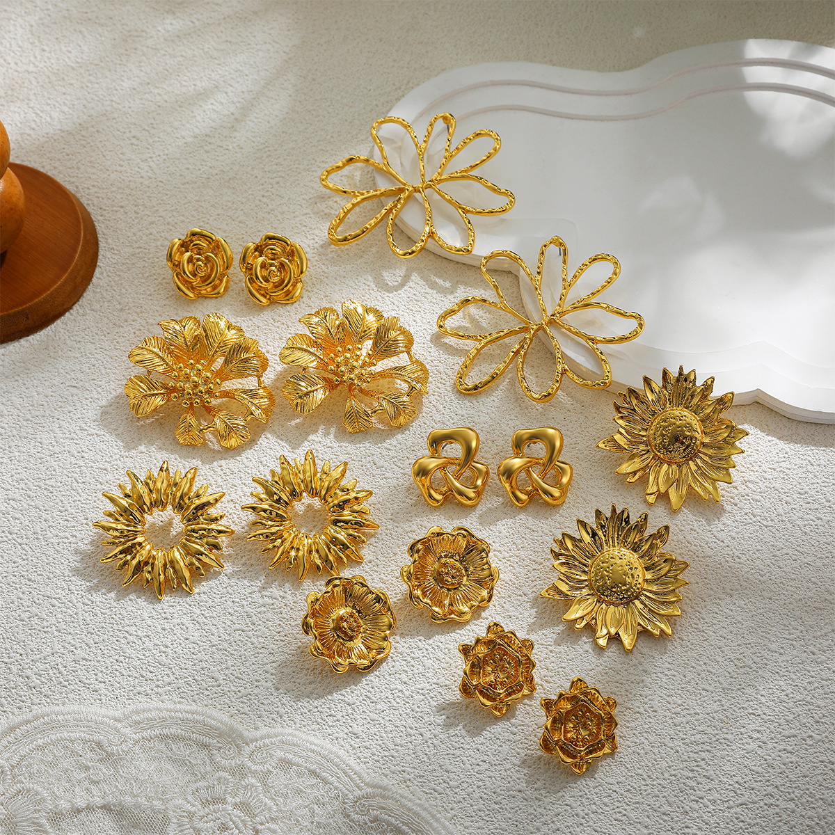 欧米の国境を越えた金色の非対称花ピアスのアイデアデザイン感