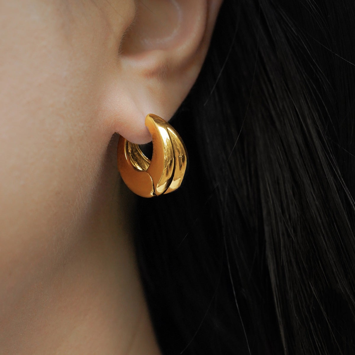 欧米国境を越えたステンレス光沢面C形メッキ18k真金中空耳飾りシンプルなファッション百合フランスイヤリング