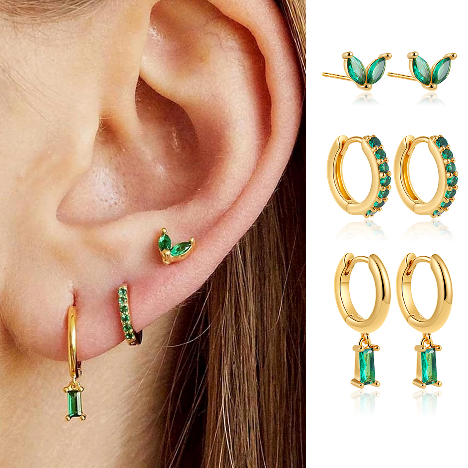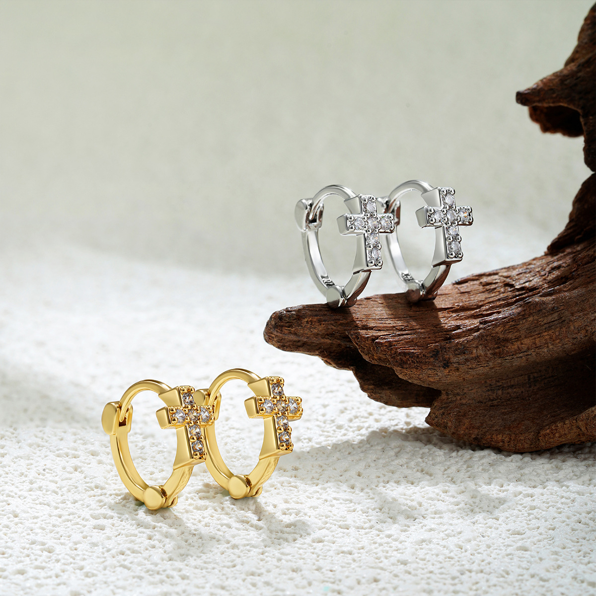 18k本物の金のステンレスの花のフラッシュドリルのクロスジルコンのフラッシュドリルの小さい耳輪のかわいいシンプルなネットの赤いイヤリング