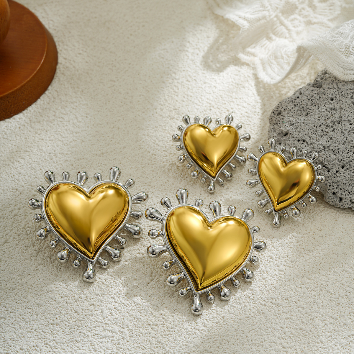 欧米の国境を越えた金銀の2色の愛の亜鉛合金のピアスの超大型の誇張する個性のイヤリングの桃のハート型のイヤリングのアクセサリー