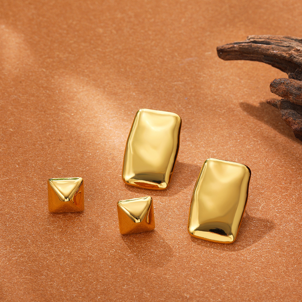 欧米のファッションシンプルな18k金メッキステンレスの凹凸の四角形のイヤリングの大気の高級感の中古の四角のピアス