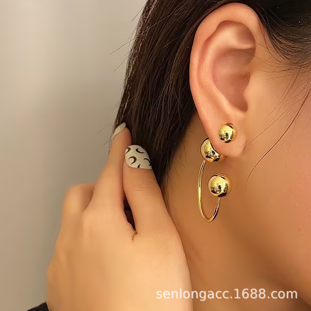 クロスボーダーの人気個性的なステンレスの光のボールの前後の多種の戴法の女性の気質の欧米のピアスのイヤリング