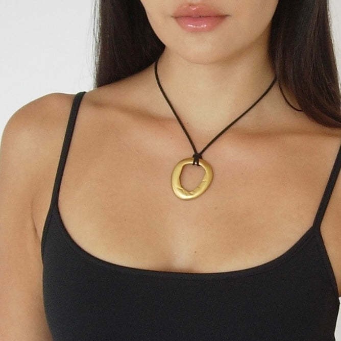 ヨーロッパとアメリカのクロスボーダーパーソナライズされた不規則な楕円形の中空ペンダントネックレス女性用シンプルな幾何学的な楕円形のレザーロープネックレス
