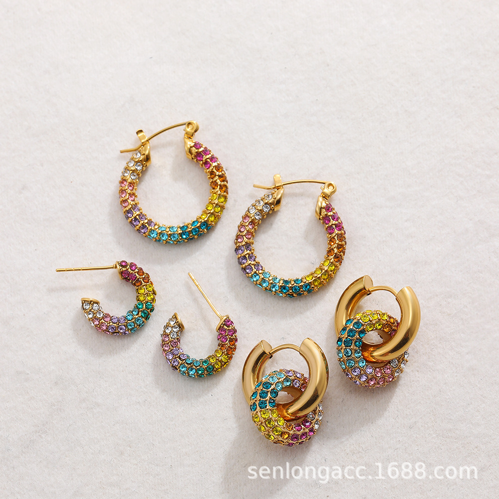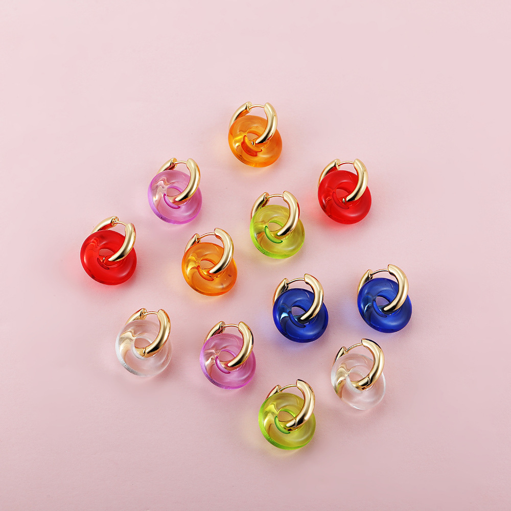 国境を越えた欧米の新型フランス風シンプルステンレス透明カラー樹脂個性ファッション女性耳輪耳たぶ