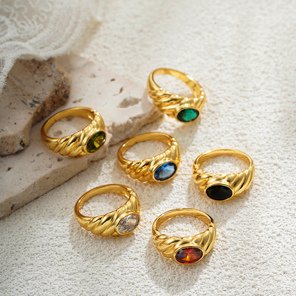 欧米の国境を越えた個性的なファッション百合指輪18k金モザイク白緑指輪復古多色ジルコン指輪