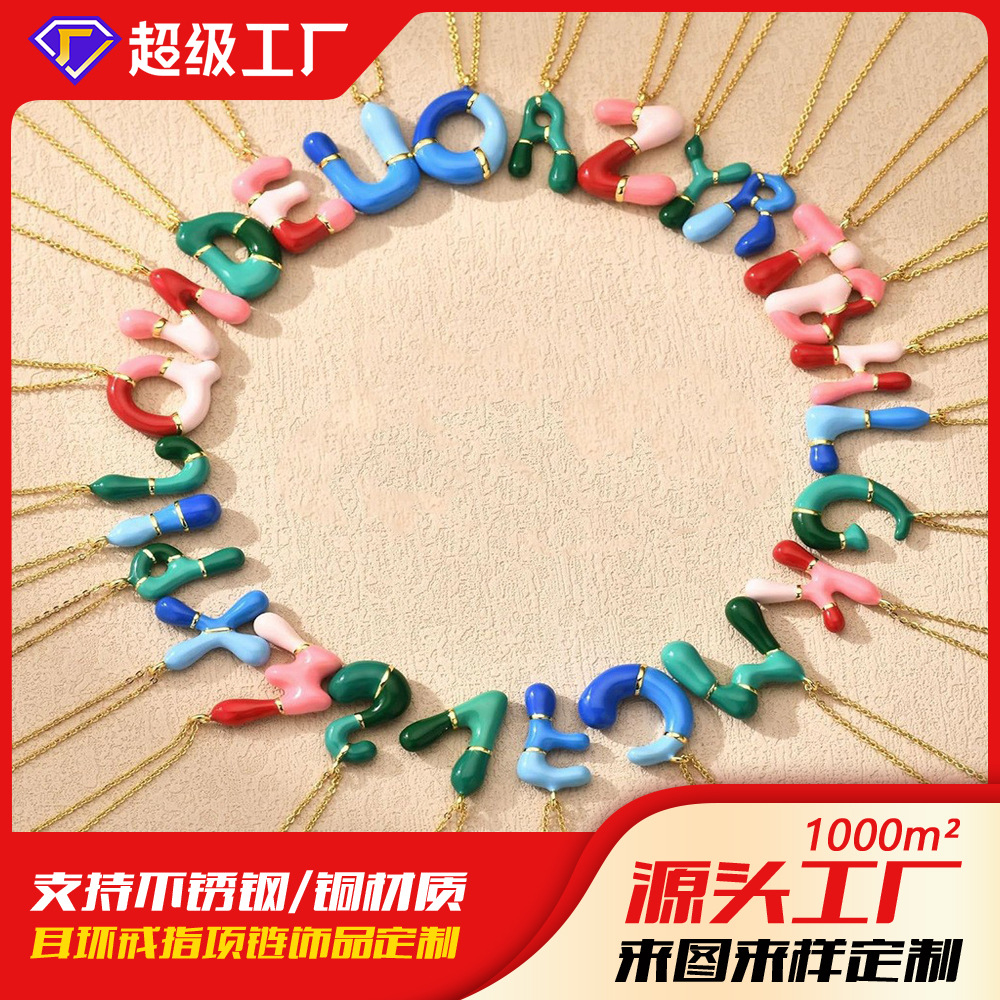 クロスボーダードーパミンバブル 26 英字ネックレスペンダントカラフルなエナメルオイルドリップステンレス鋼鎖骨チェーン