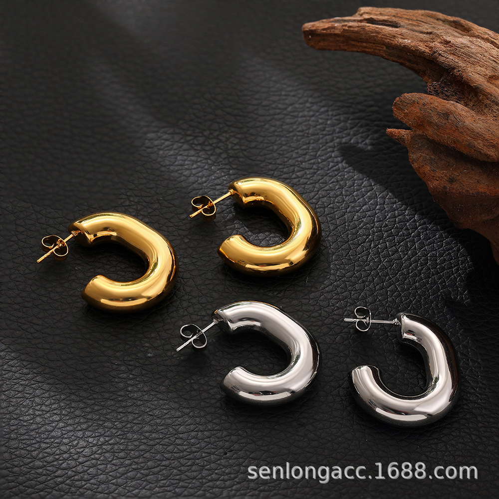 熱い販売の18kの真金のステンレスの開口部のu形のイヤリングのイヤリングの女性の気質のinsの風のネットの赤いのは軽くて豪華です。