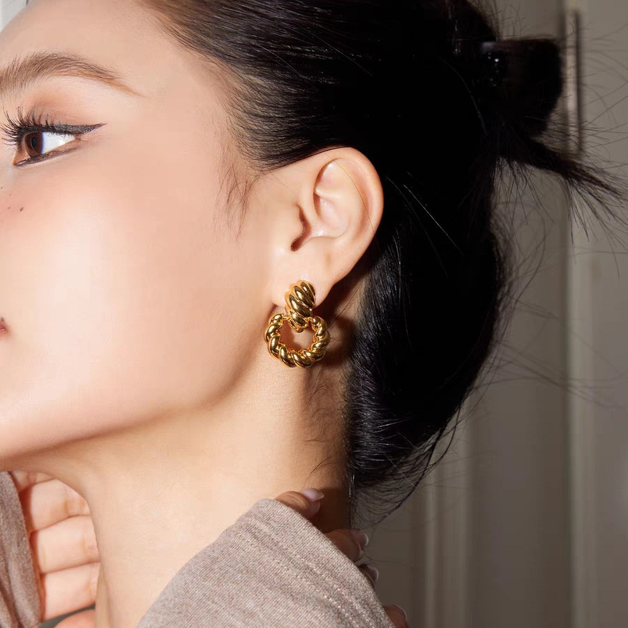 18k欧米風ファッションデザイン気質軽豪華高級冷淡風シンプルねじ耳飾り卸売り