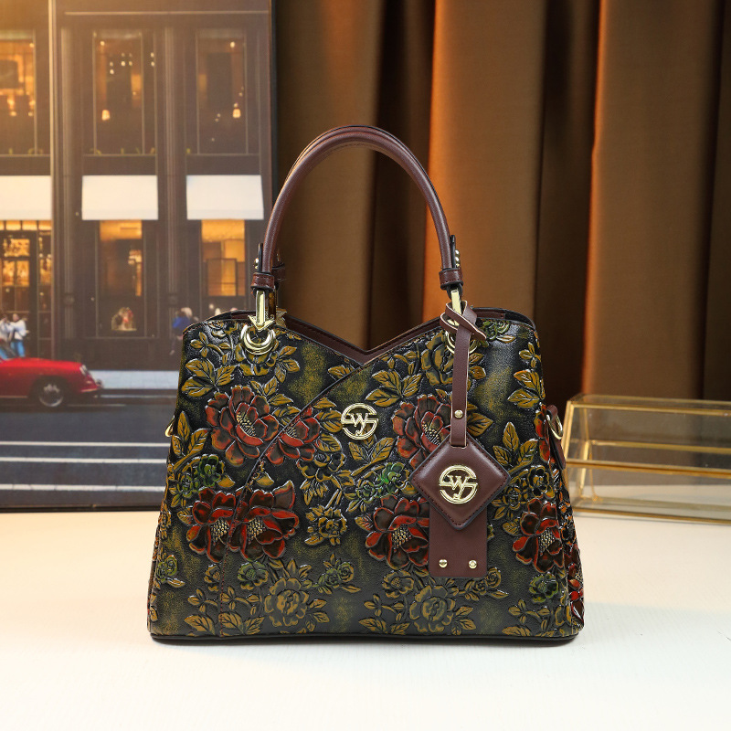 中年のお母さんは日常的に彫刻ハンドバッグを組み合わせています。