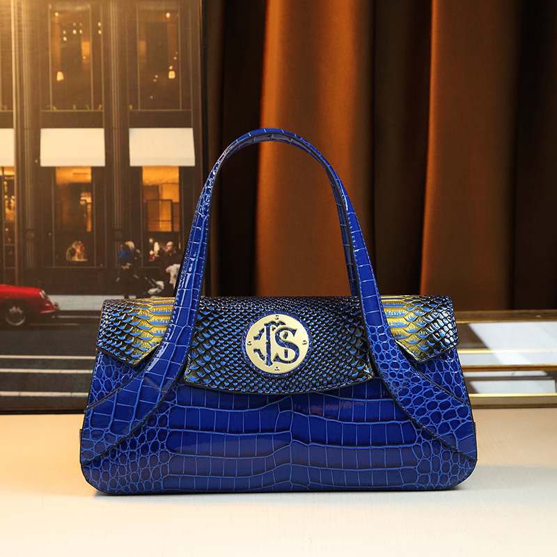 大容量レディースワニ柄ボストンバッグブルートレンドレディースシングルショルダーバッグ6070