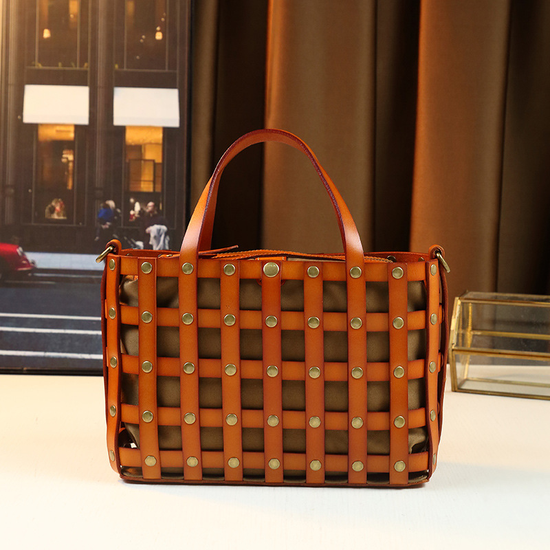 透かし彫りの特包の新型の小さい大衆のショルダーバッグの女性の復古のリベットのハンドバッグの通勤の斜め掛けの大きい包み