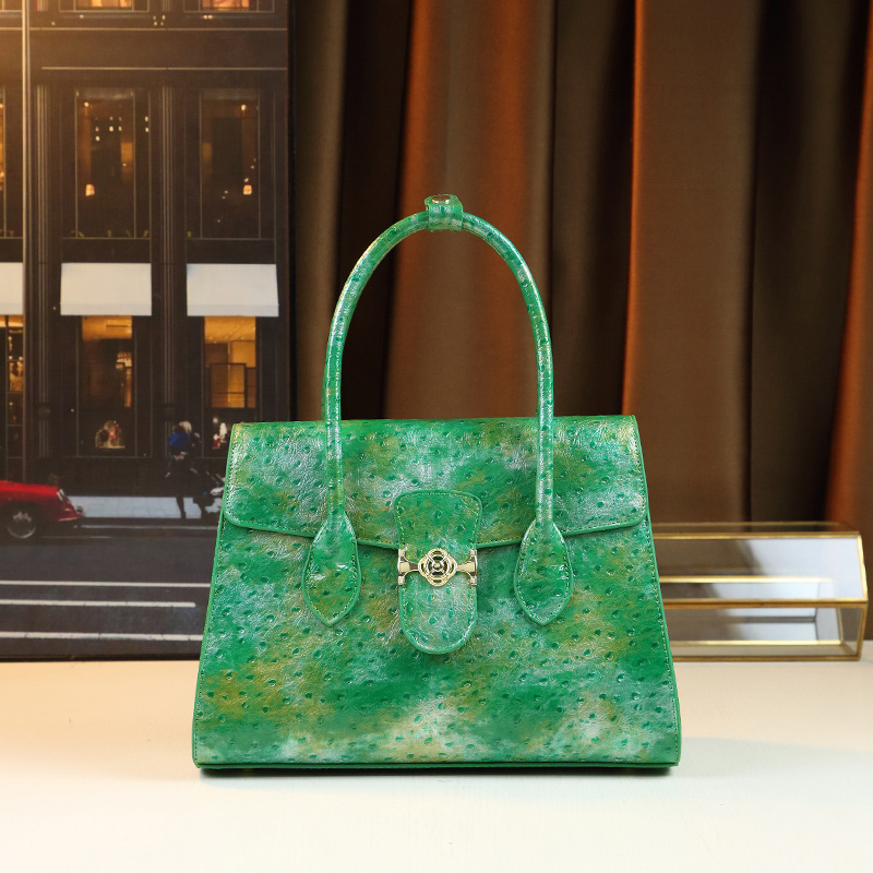 2024新型大気ダチョウ柄グリーン女性ハンドバッグファッション百合シングルショルダーバッグ7995