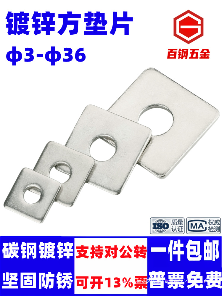 ホット亜鉛メッキ四角いガスケット冷亜鉛メッキ四角いガスケットステンレスカーテンウォールフラットワッシャー金属鉄パッドM3-M30