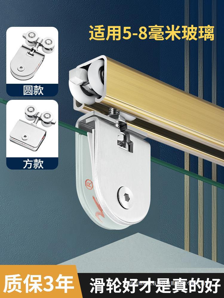 シャワールームの仕切りに枠がない8mmガラスの押し引きドアの上の軌道の浴室の滑車のガラスの吊り下げの小さい吊り輪