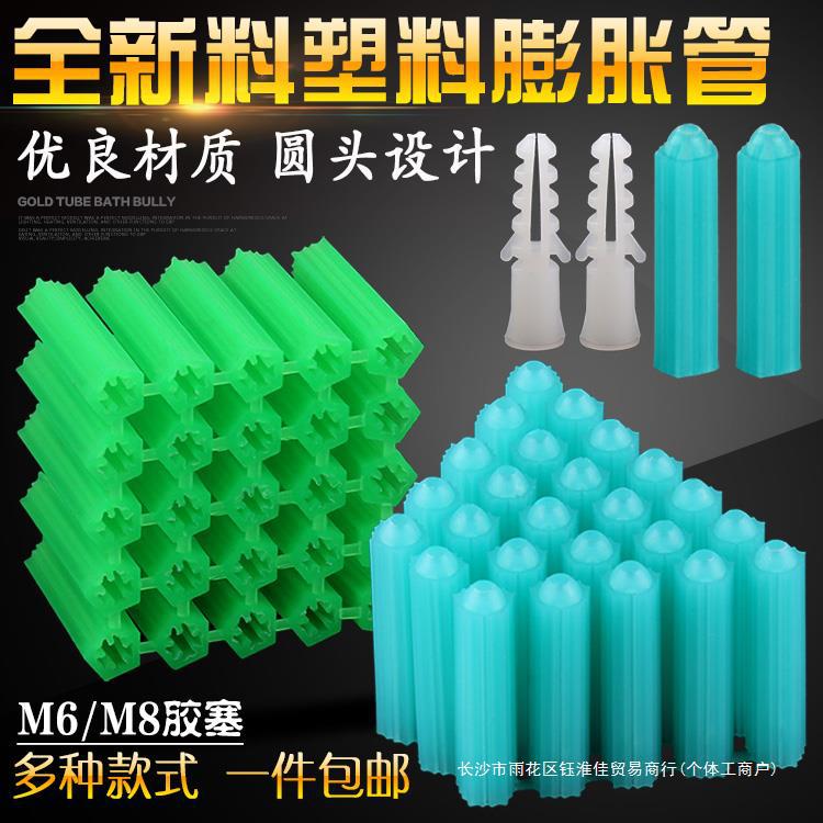 新しい材料のプラスチック膨張管m 6m 8センチの国標は緑と青の白色の連体ゴムのプラグの先の丸い頭を厚くして壁の粒を固めます。