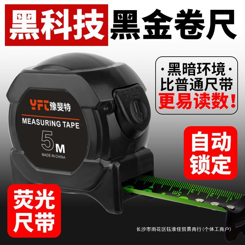 黒金蛍光セルフロック鋼の巻尺は5メートル3メートル7.5メートル10メートルの高さの精度のレーザーのスプレーコードで厚くて硬い米の定規をプラスします。