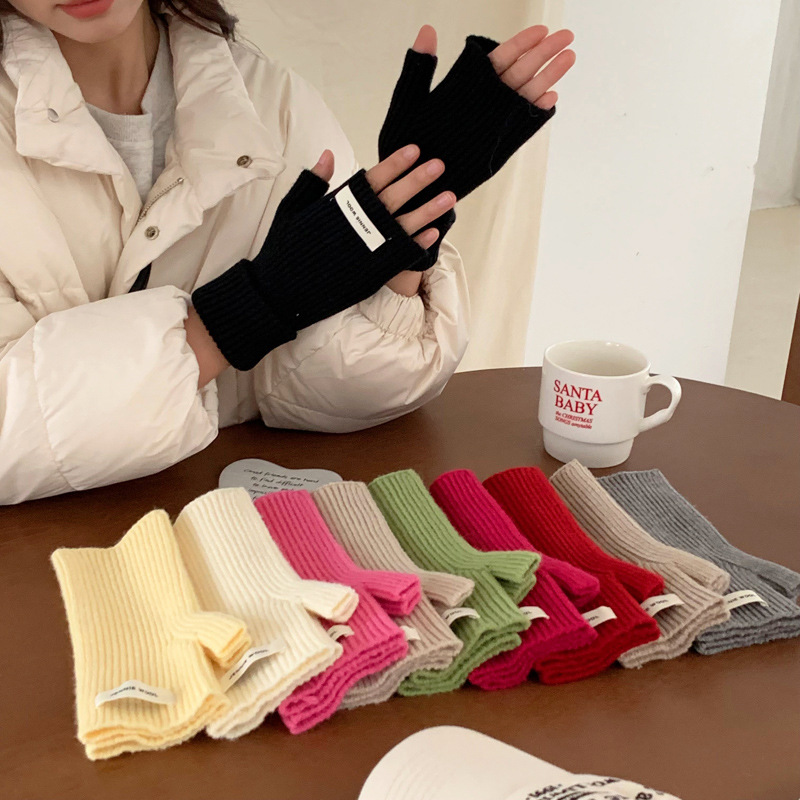 半分の指の毛糸のニットの手袋の短いタイプの男女の学生のかわいい秋冬の厚い保温は指を露出してタッチパネルで字を書くことができます。