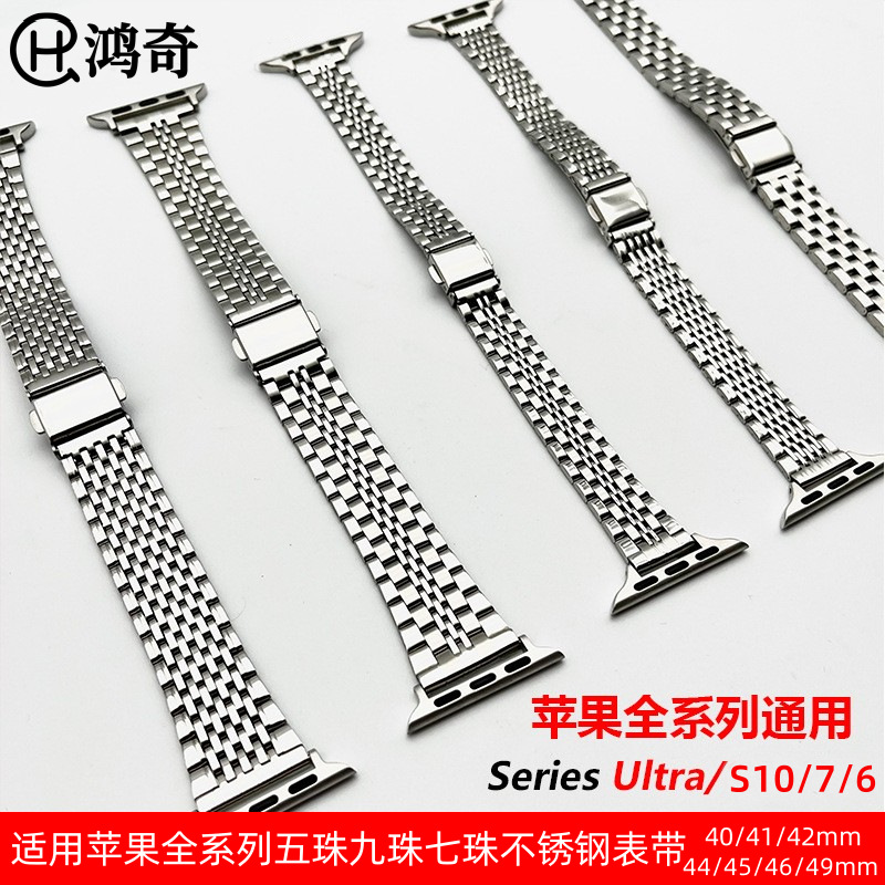 適用華強北/アップルのスマート腕時計バンドのステンレスの縁にダブルボタンの9つのビーズの腕時計のチェーンがあります。