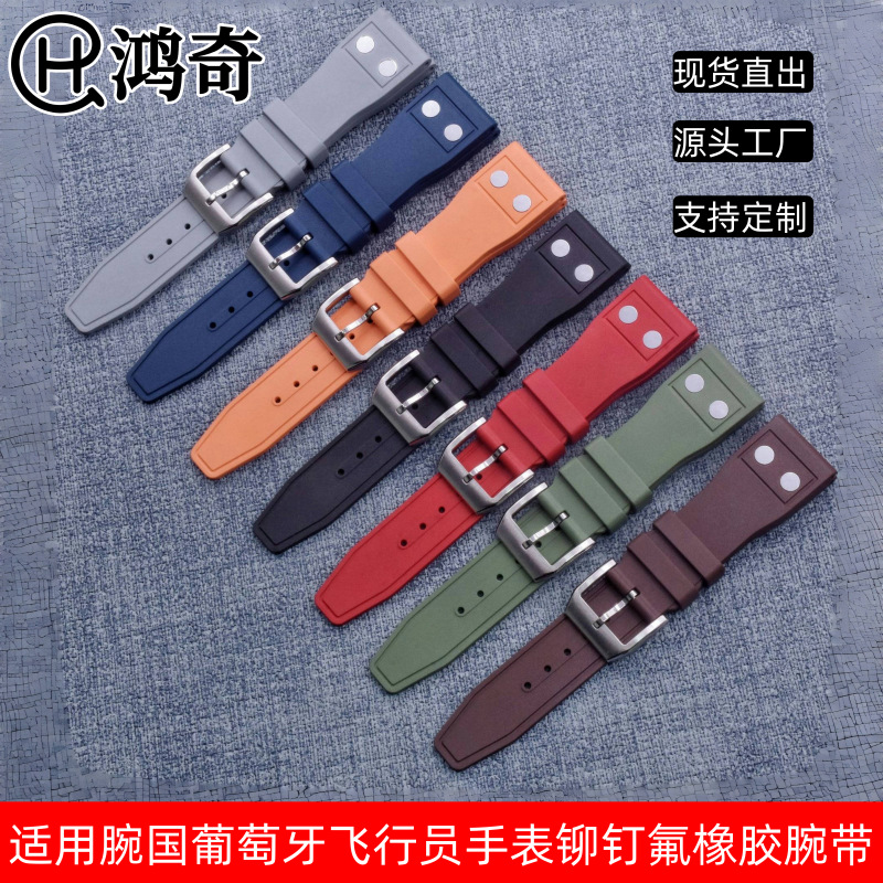 腕国フッ素ゴムバンドポルトガルパイロット腕時計FKMシリコンリベット腕バンド男20mm/22mm