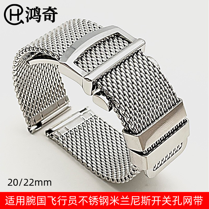 適用海馬300蝶飛海洋宇宙シリーズ007ミラノネットステンレス腕時計バンド折り畳みボタン20 22m