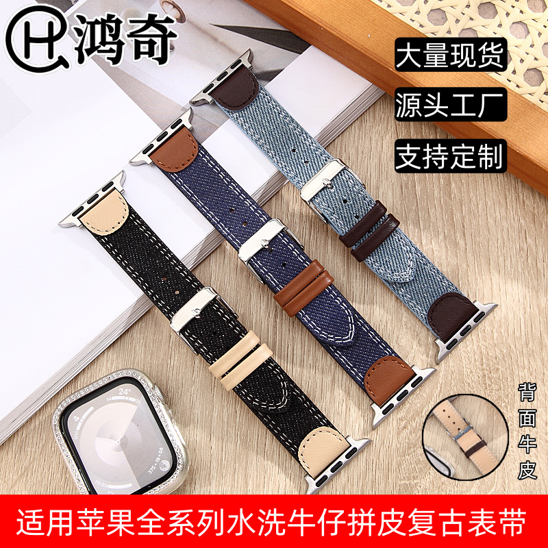 Apple S10 カウボーイ ウォッチ ストラップ キャンバス ウォッシュ iwatch968 レトロ ニュートラル デニム レザー 42mm に適しています。