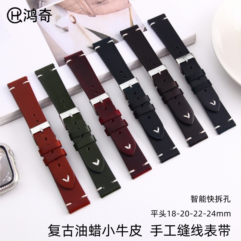 スポットオイルレザー第一層イタリア変色オイルワックス本革無地時計ストラップクイックリリース穴手作り V ライン時計チェーン卸売