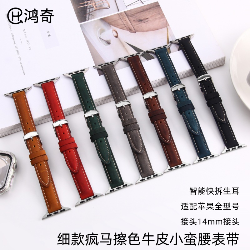 Apple S10 牛革時計ストラップクレイジーホースレザーレトロスリム iWatch697SE スモールウエストカラーリングウォッチチェーンに適しています。
