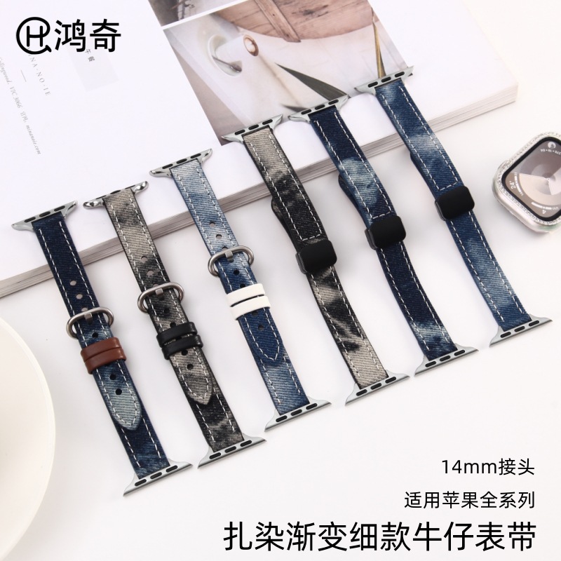 Apple S10 タイダイデニムウォッチストラップ、スリムウエスト iwatchs9678se オールドウォッシュリストバンドに適しています。