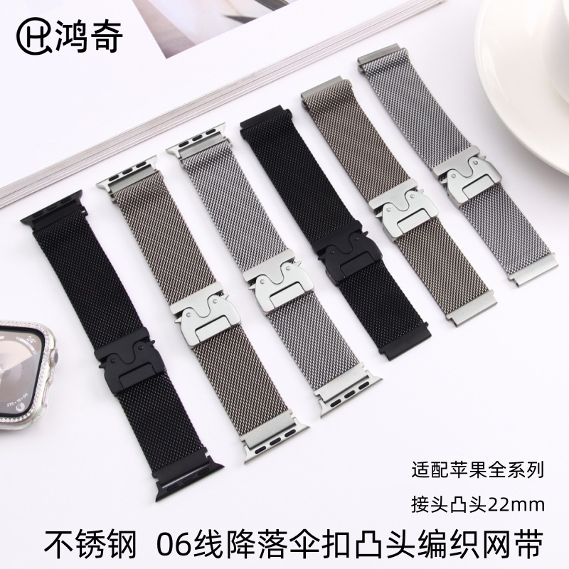 Apple S10 Huawei GT5 スマートステンレススチール時計ストラップ 06 ラインミラネーゼ織り金属パラシュートバックルに適しています。
