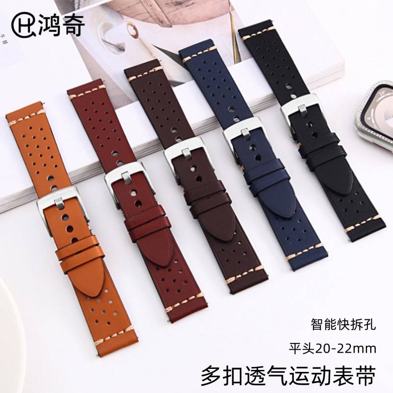 ユニバーサル第一層牛革多孔質通気性スポーツ MOTOGearS3 レザーストラップクイックリリースレトロ本革 20mm22mm
