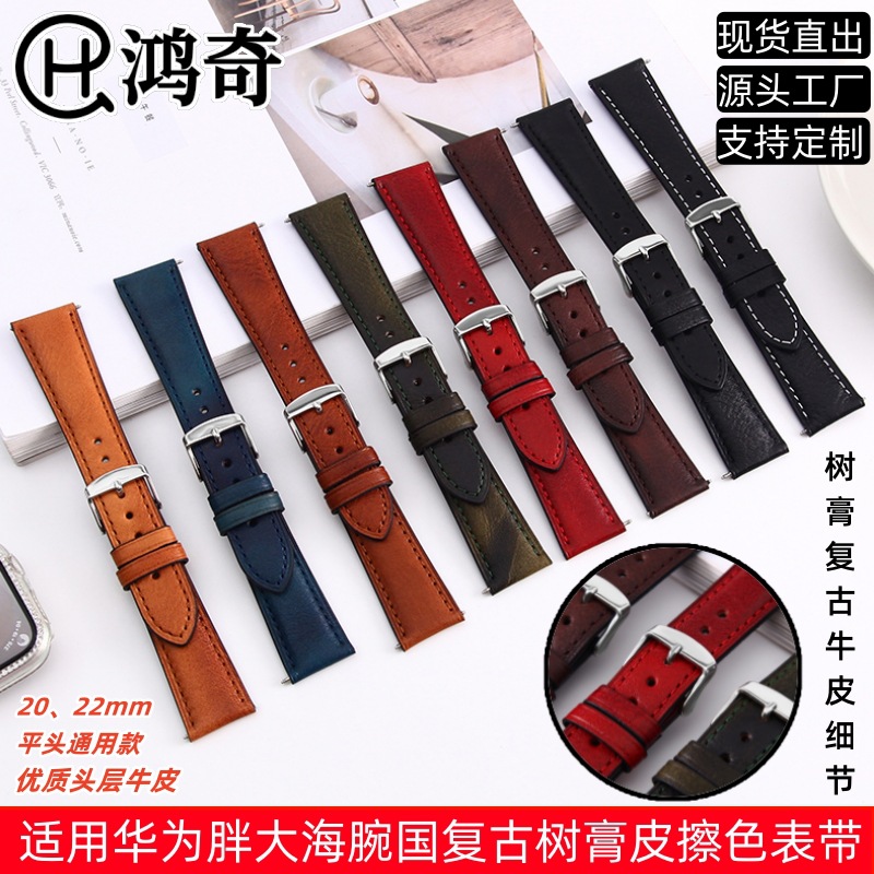 Huawei GT5 ファットシーリストレートレザーストラップレトロ第一層ツリーペースト牛革カラーリングレザー 22mm20mm に適しています。