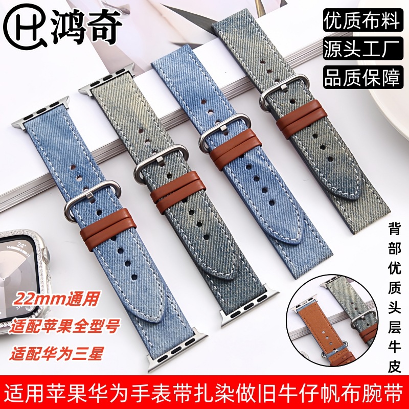 Apple S10 Huawei GT5 デニムウォッチストラップ タイダイキャンバス iwatch デニム グラデーション ウォッシュ 40mm 夏に適しています。