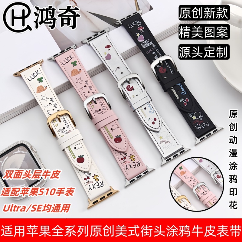 新しい Apple S10 オリジナルレザーウォッチストラップアメリカンストリートグラフィティ iwatch9 プリント牛革 42 ミリメートル